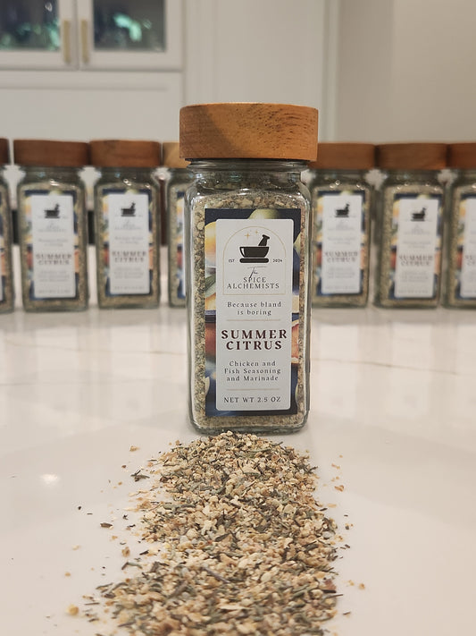 Summer Citrus Seasoning & Marinade: Sunshine in Every Bite (Chicken or Fish!) - 2.5 oz eco-friendly glass jar